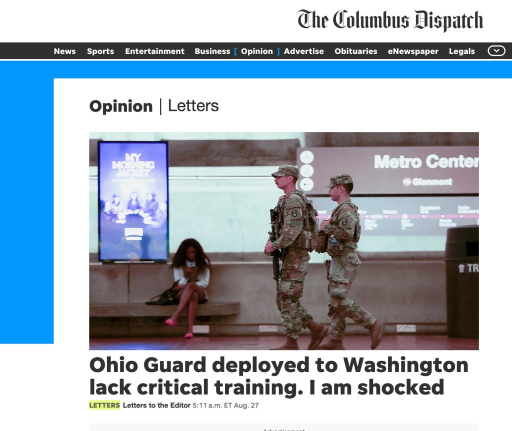 Columbus Dispatch Letter to the Editor condemning Ohio Guard Deployment